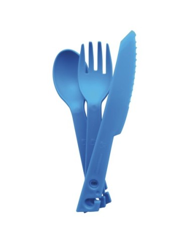 Whether you've lost a piece of your Vivac camping set, need extra cutlery, or are looking for some nice, practical and durable cutlery for your terrace or garden, here you have this 3-piece set in blue polypropylene, with a indentation to keep them together and a hook for hanging.