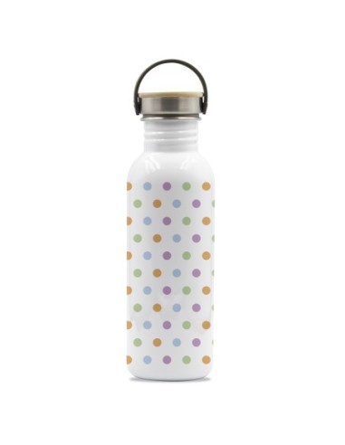 18/8 stainless steel bottles, 500 or 750 ml capacity, light and very resistant, in soft pastel tones, with a completely hermetic bamboo and stainless steel cap.