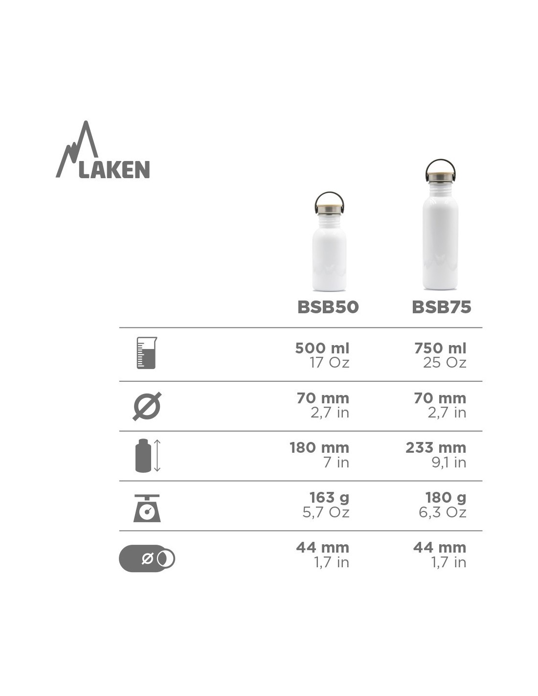 New stainless steel and bamboo cap with rubber handle. A stylish addition to any of our Basic Steel bottles.