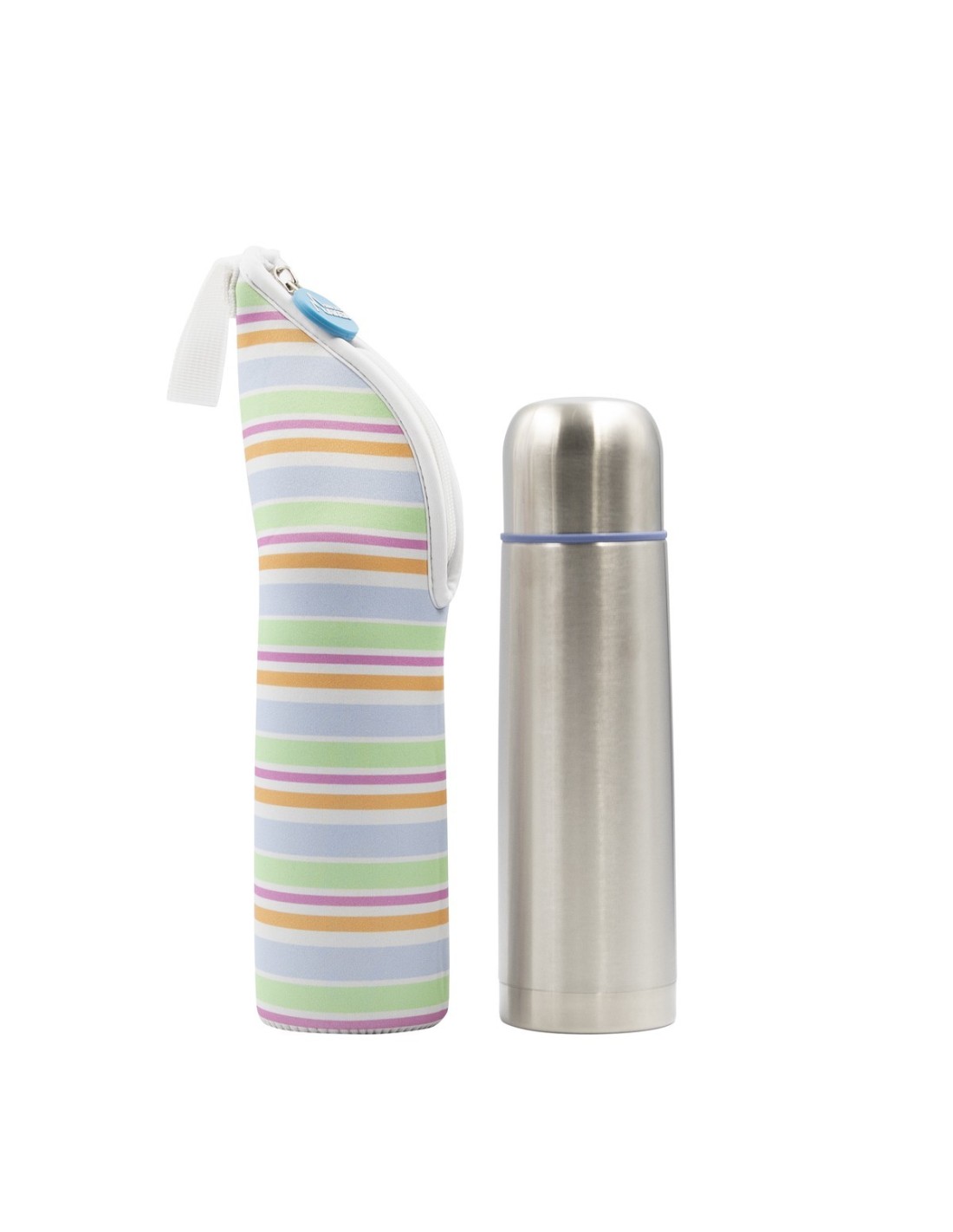 Enjoy the best thermal performance with this thermo flask, which also has a comfortable inner button cap and a practical lid that turns into a glass. The cover Bands of the Laken product range Drink Life!, already a top seller, includes a strap with a popper fastening that allows you to hold it or hang it comfortably wherever you go.