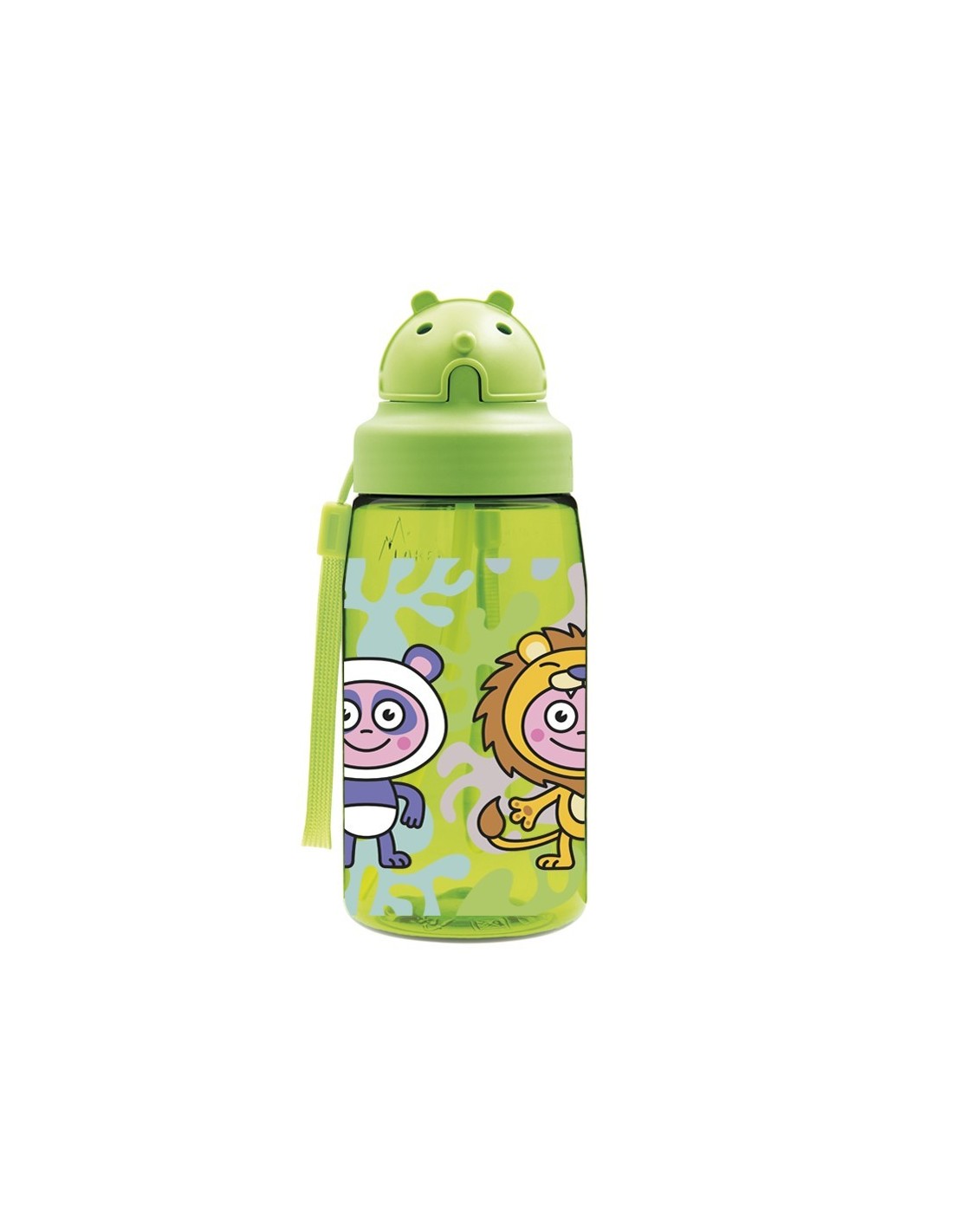 Tritan bottle equipped with OBY cap, perfect for kids, so they can open and close it whithout help. It has a straw inside as long as the bottle, so you can hold the bottle vertically to drink the content. Completely tight, very lightweight and free of BPA or other harmful substances.