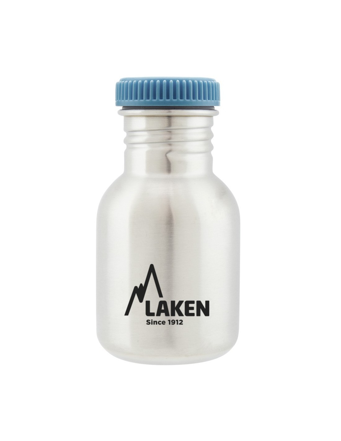 BOTELLA DE ACERO INOXIDABLE 0,35 L GRIS BASIC STEEL TAPÓN PLAIN CON TAPA AZUL