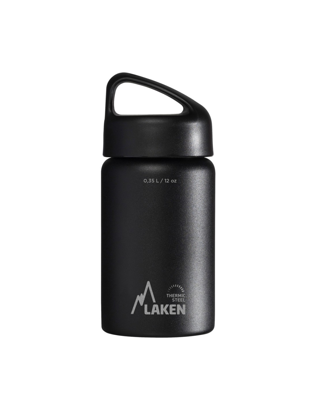BOTELLA TÉRMICA DE ACERO INOXIDABLE 0,35 L NEGRA. TAPÓN CLASSIC