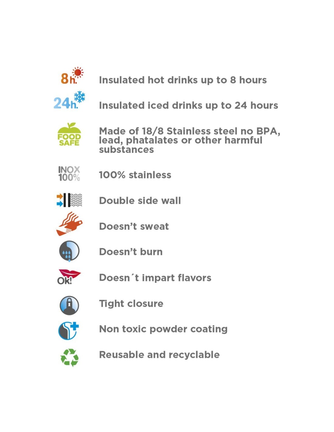 La botella térmica Classic es la opción ideal para mantener tu bebida hasta 8 horas caliente o hasta 24 horas fría. Su boca ancha te permite introducir hielos en su interior, incrementando así su rendimiento térmico. También puedes llenarla de café u otras bebidas de forma muy cómoda y sin derrames.