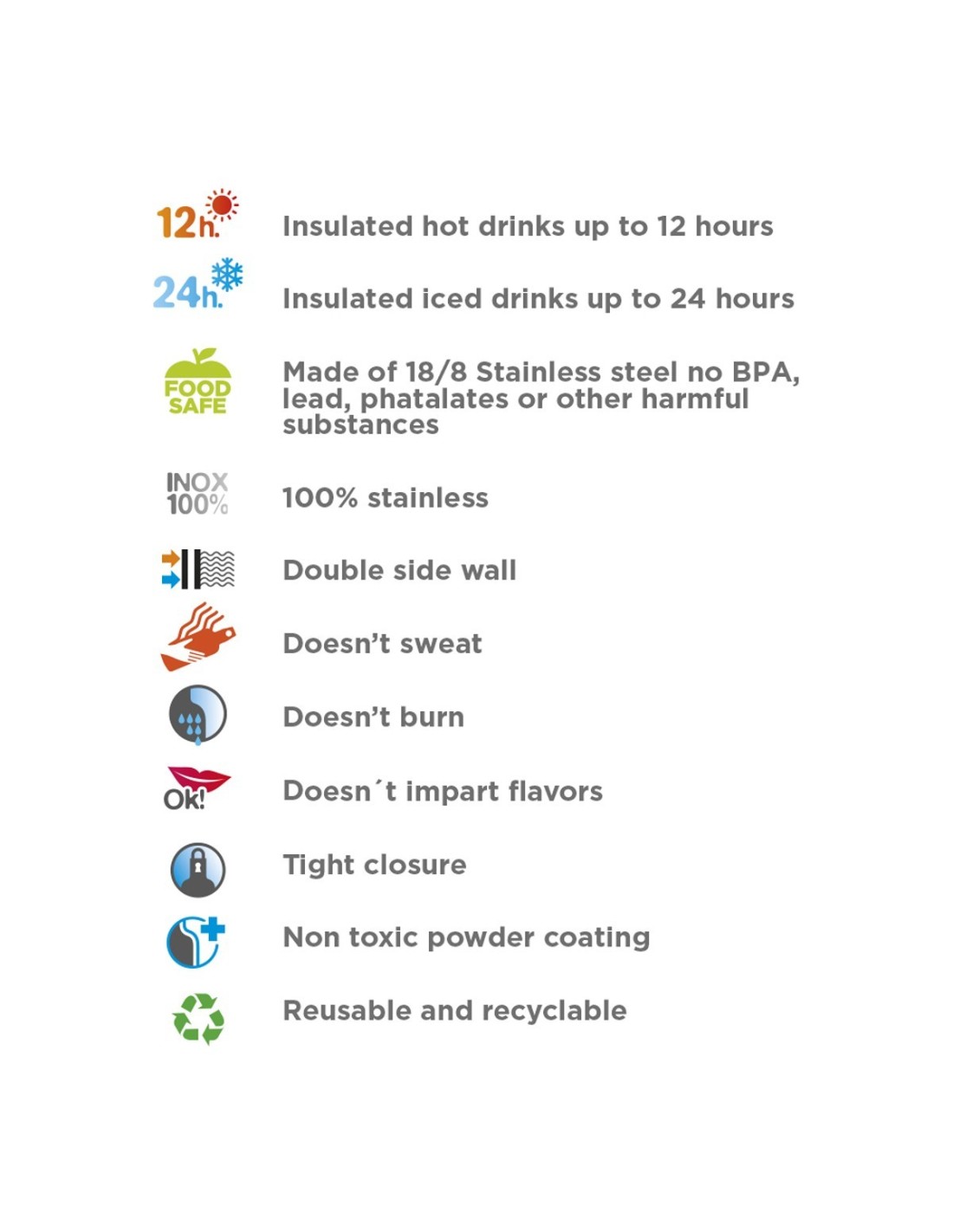 • Aislamiento de vacío con doble pared de acero inoxidable 18/8