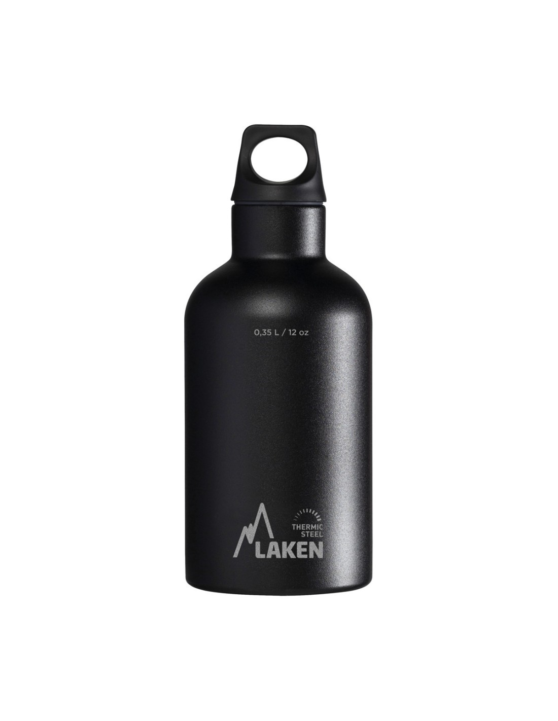 BOTELLA TÉRMICA DE ACERO INOXIDABLE 0,35 L NEGRA. TAPÓN FUTURA