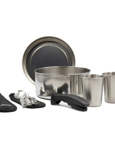 SET DE CAMPING DE ACERO INOXIDABLE 20CM CON FUNDA DE NEOPRENO PARA 2 PERSONAS